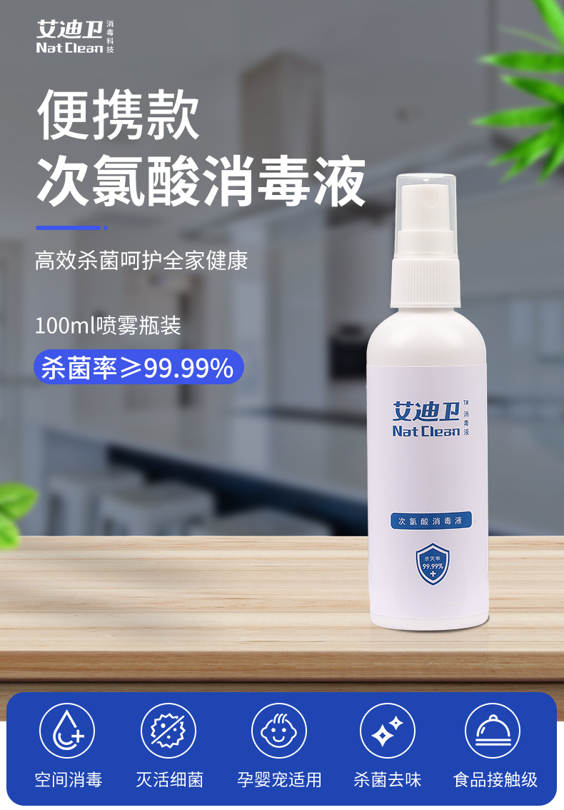 - 商品名称:艾迪卫NC-01艾迪卫次氯酸消毒液100ml 杀毒效率更高99.99%
