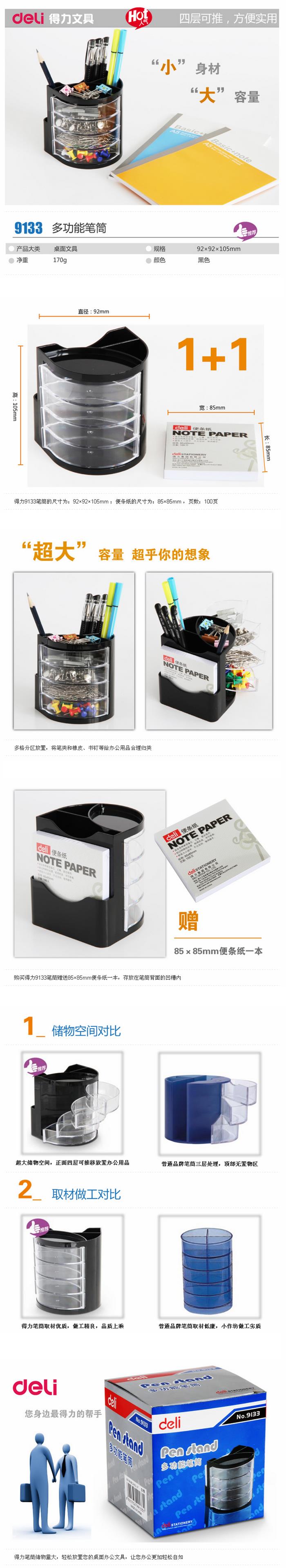 - 商品名称:得力 多功能笔筒(带便条纸)<黑色>