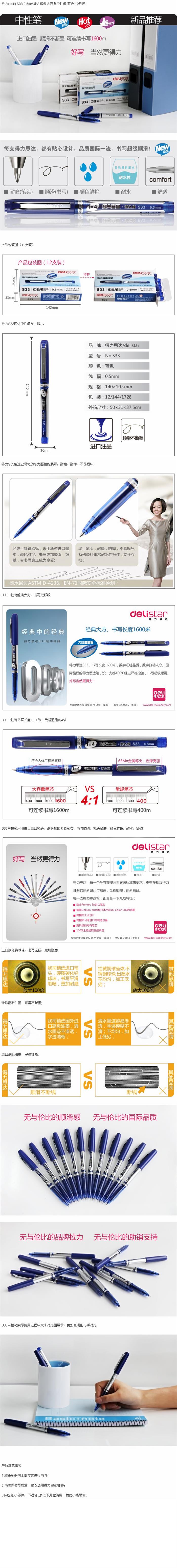 - 商品名称:得力S33海之鲸超大容量中性笔 0.5mm<蓝色>