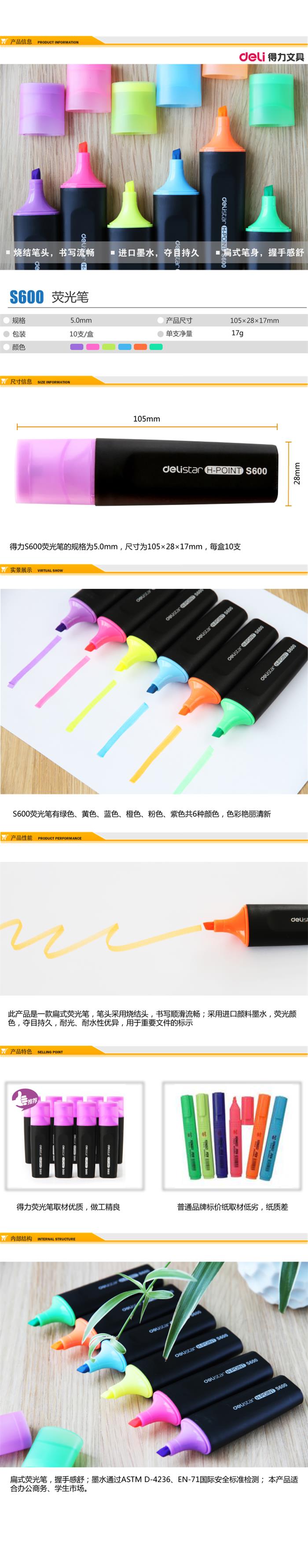 - 商品名称:得力 标记醒目荧光笔<紫色>10支/盒