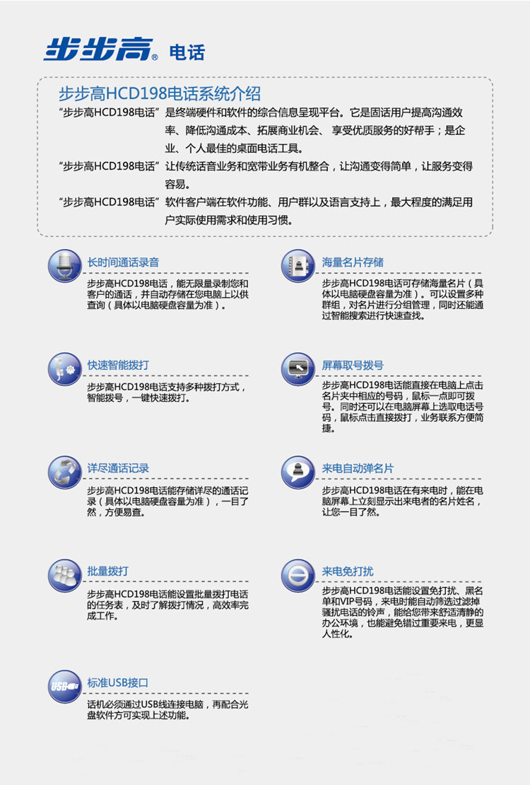 - 商品名称:步步高HCD198智能录音电话(蓝色)