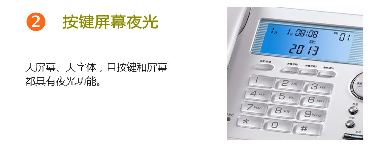 步步高HCD007(172)TSD免电池电话 白色 屏幕按键夜光 精致高档