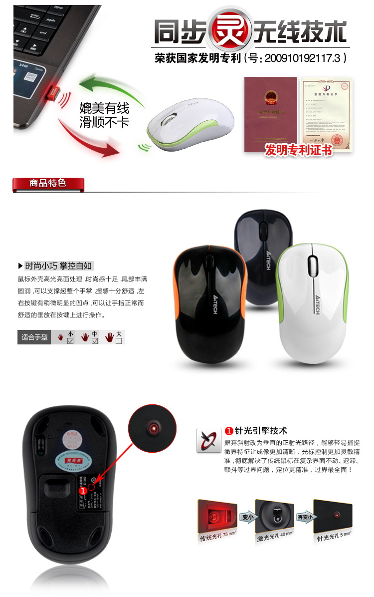 - 商品名称:双飞燕 A4Tech G3-300N无线鼠标 黑
