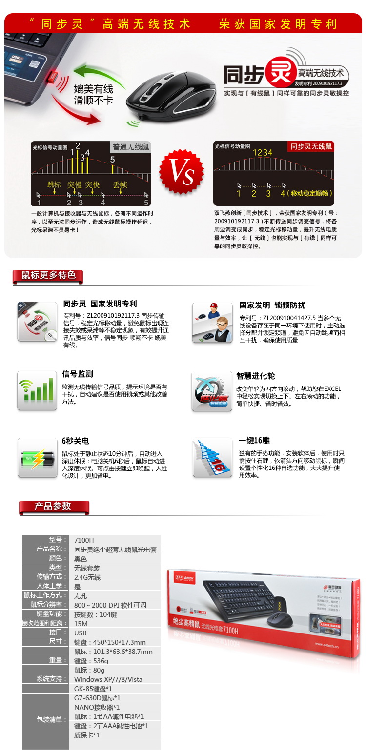 - 商品名称:双飞燕 A4Tech 7100N无线键鼠套装
