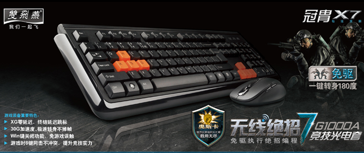 - 商品名称:双飞燕 A4Tech RV1000无线游戏键鼠套装
