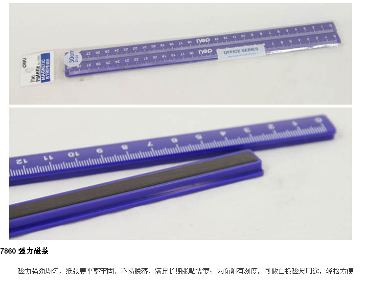 ┃颜色:蓝色┃规格:30cm┃包装:1/24/192(×2pcs)┃外箱尺寸:33×31.5×22cm┃磁力强劲均匀,纸张更平整牢固、不易脱落,满足长期张贴需要┃表面附有刻度,可做白板磁尺用途,轻松方便